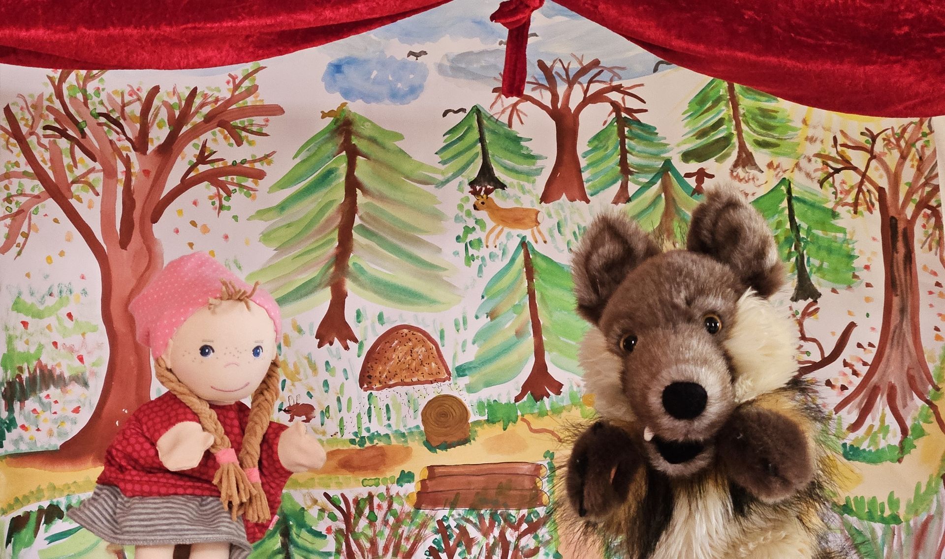 Unsere Bühne ist in unserer kleinen Werkstatt mit allen Details in Eigenleistung und Handarbeit endstanden. Unsere Puppen werden teilweise von uns in Handarbeit gefertigt.